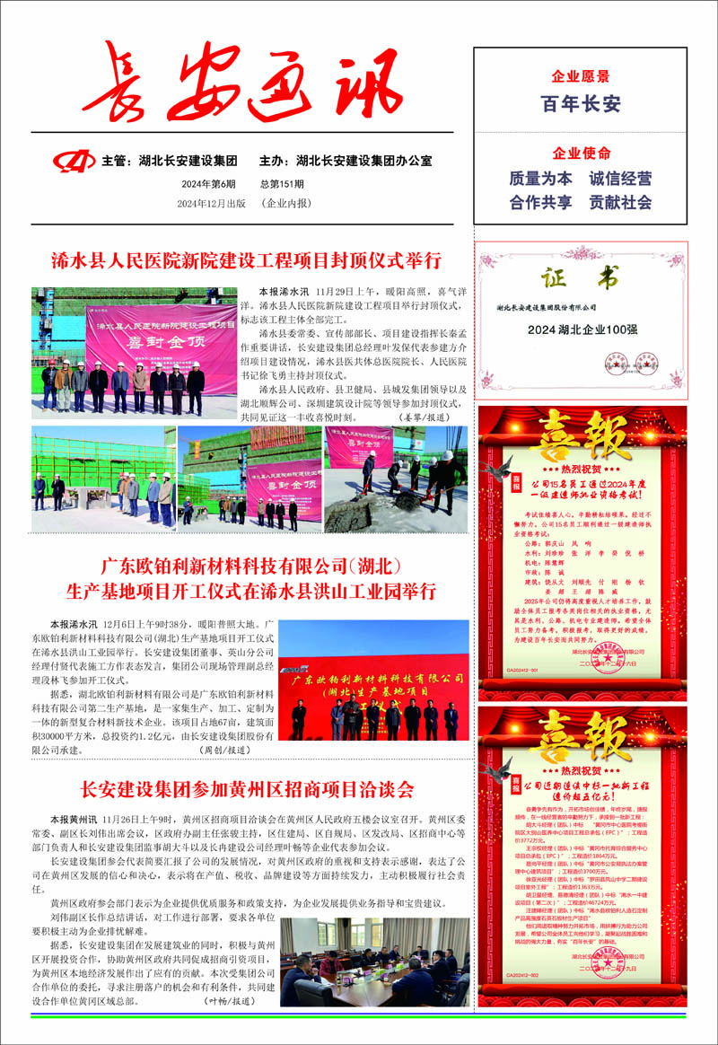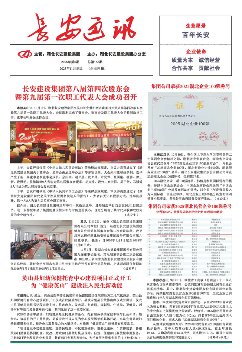 • 2025-11-03 集團(tuán)公司榮獲2025湖北企業(yè)100強(qiáng)稱(chēng)號(hào),位列第77名