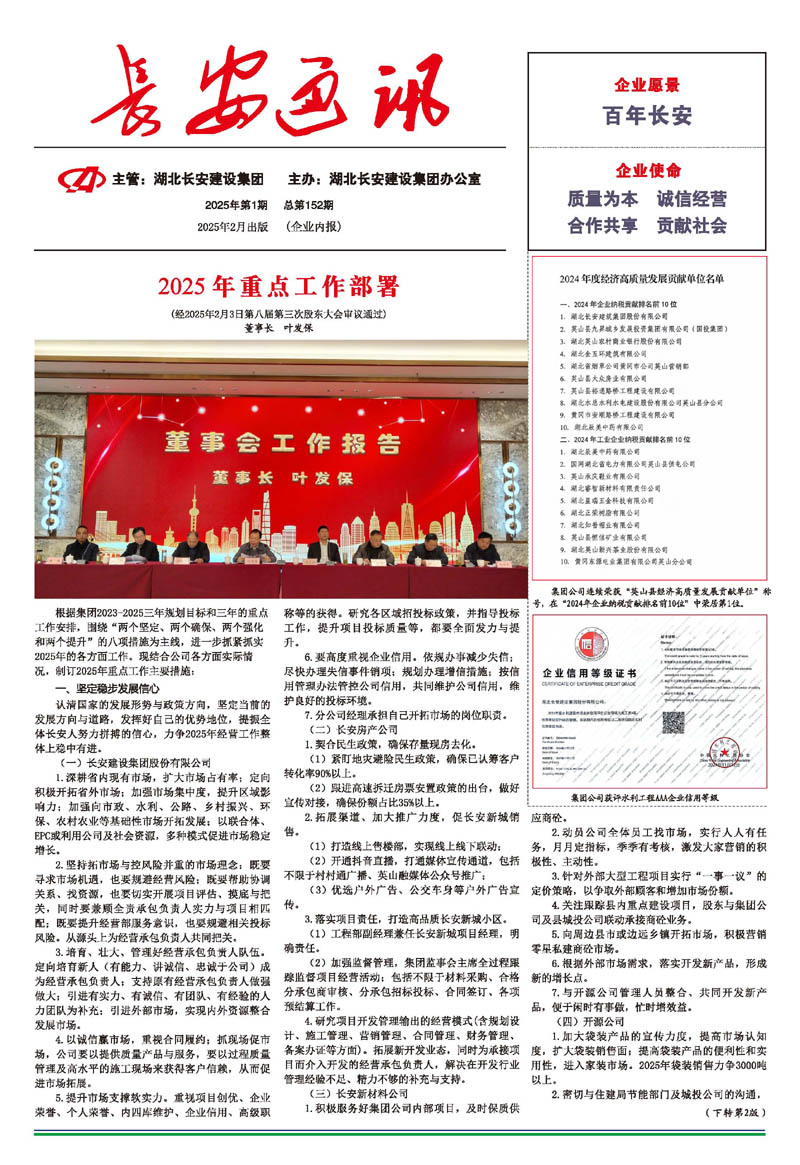 • 2025-11-03 長(zhǎng)安建設(shè)集團(tuán)聘任徐正新同志為湖北長(zhǎng)安建設(shè)集團(tuán)股份有限公司總經(jīng)理、余招剛同志為英山縣長(zhǎng)安房地產(chǎn)開(kāi)發(fā)有限公司總經(jīng)理