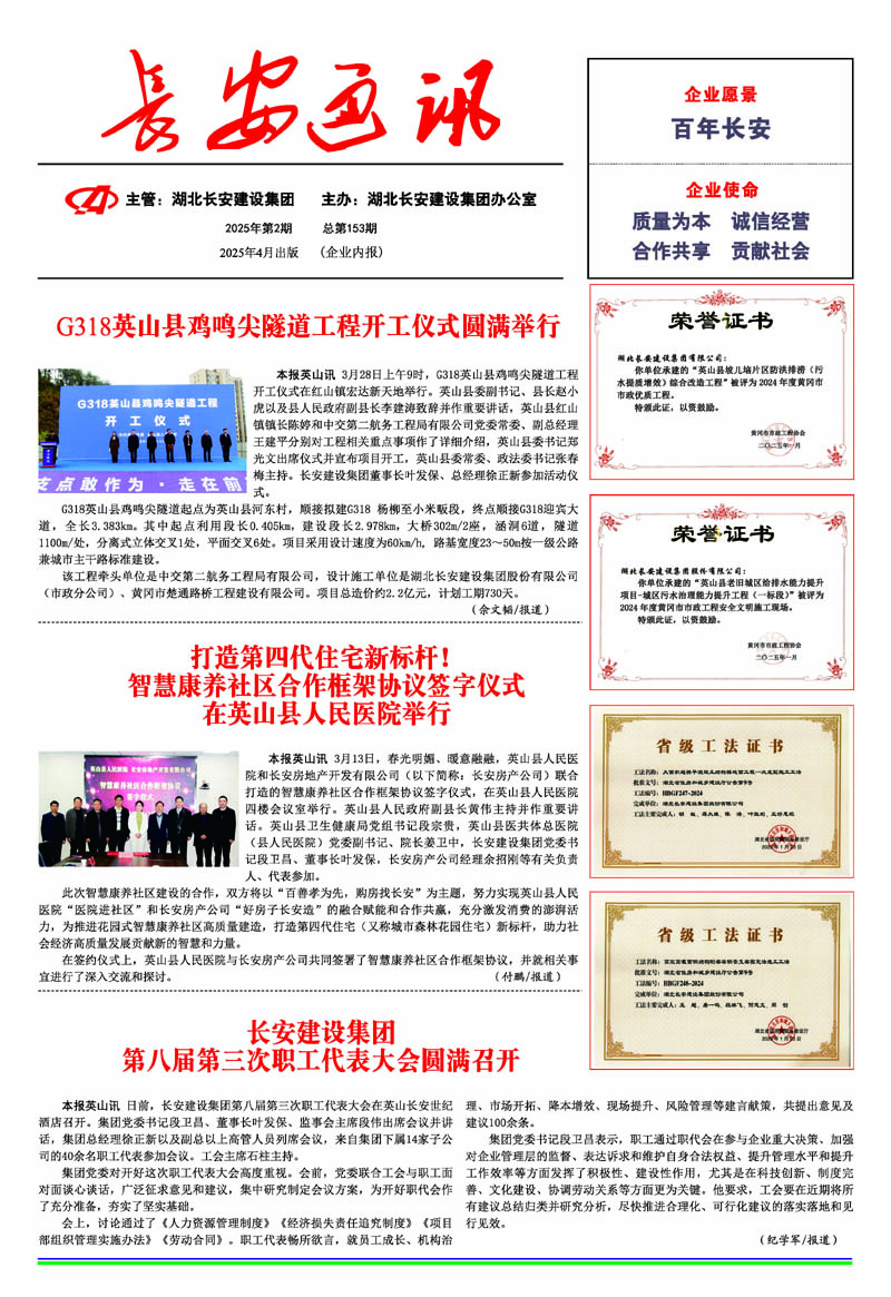 • 2025-11-03 段衛(wèi)昌同志當(dāng)選為湖北長(zhǎng)安建設(shè)集團(tuán)股份有限公司第九屆董事長(zhǎng)